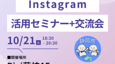 ニュース 【2025年10月21日】静岡県藤枝市でインスタグラム活用セミナー&交流会を開催します 静岡県藤枝市で開催!店舗経営者向けインスタ活用セミナー&交流会。売上アップに直結する運用法を学び、仲間とつながるチャンスです。 2025.10.03 ニュース