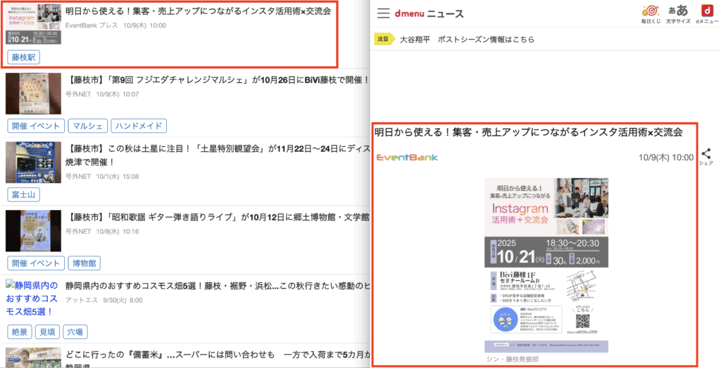 このたび、当方が主催する 「インスタグラムセミナー+藤枝交流会」 が、複数の大手メディアに取り上げられました。
