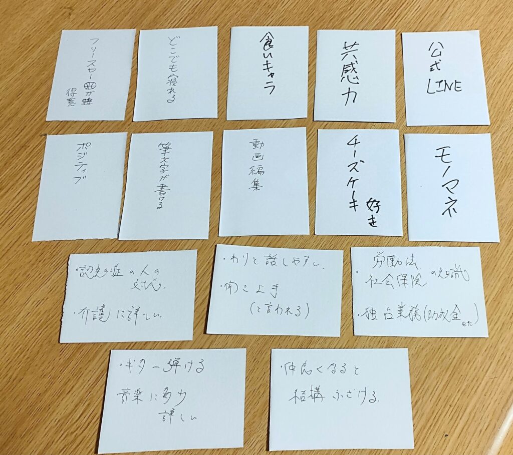 参加者が持つ資源カード(自分の提供できる資源を記入したカード)を使い、自分の得意や役割を見つけられる実践型交流イベントです。