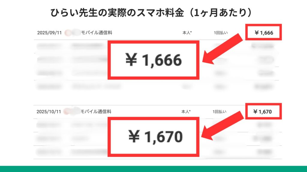 毎月のスマホ料金こんな感じです。