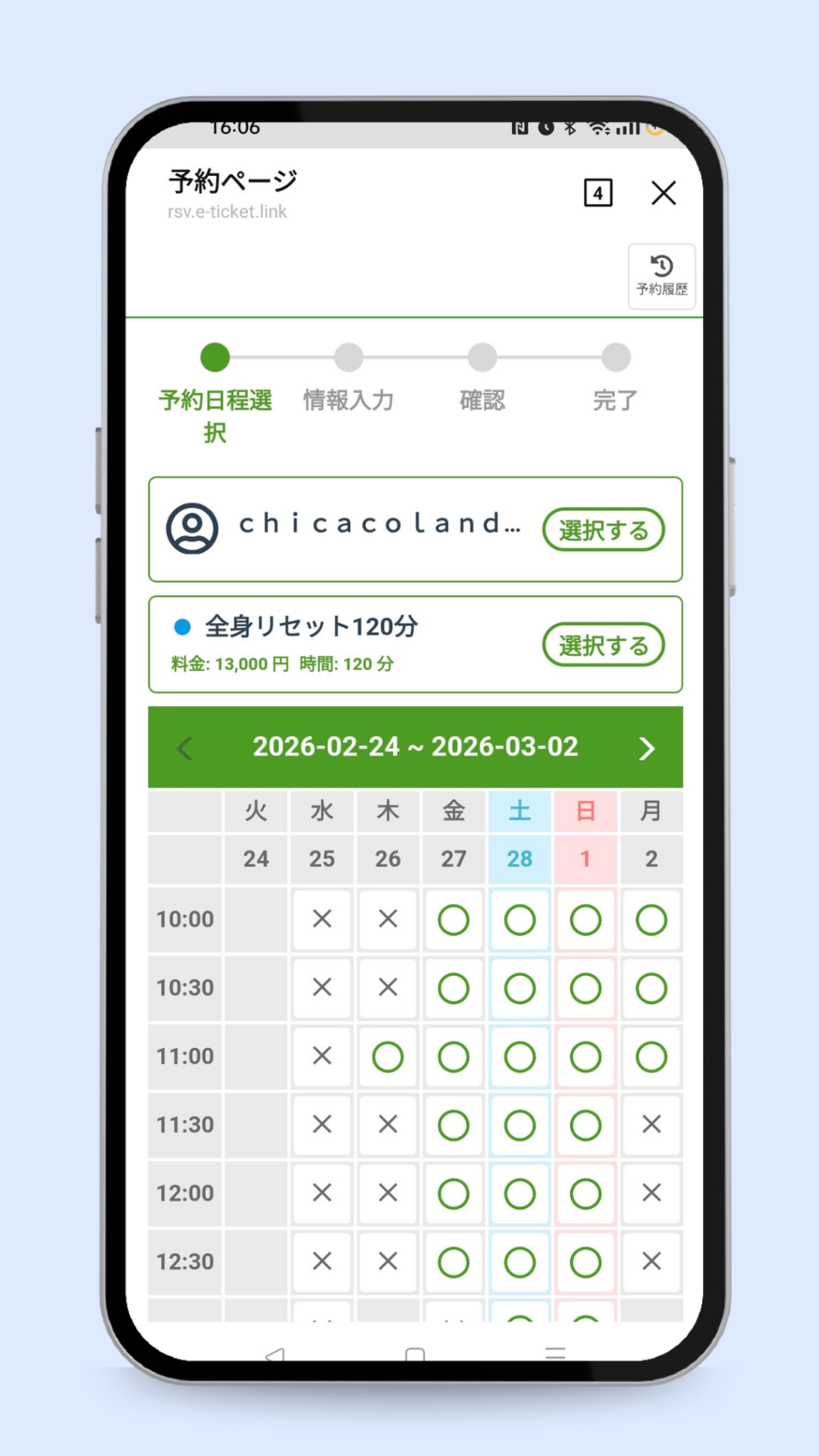 2. 予約枠(カレンダー)選択画面: リアルタイムの空き状況を確認